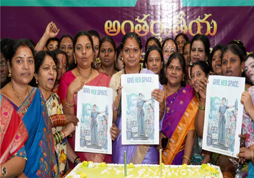 హైదరాబాద్లోని తెలంగాణ జాగృతి అంతర్జాతీయ మహిళా దినోత్సవ వేడుకలు ఘనంగా జరిగాయి. జాగృతి అధ్యక్షురాలు కల్వకుంట్ల కవిత కేక్ కట్ చేసి మహిళలకు శుభాక్షలు తెలిపారు. అనంతరం గివ్ హర్ స్పేస్ పోస్టర్ ఆవిష్కరించారు. సీఎం రేవంత్ రెడ్డి “స్టాండ్ విత్ హర్” అనే ప్రొగ్రామ్ మహిళలను అవమానించారని కవిత. మగవాళ్లు ఉంటేనే మహిళలు ముందుకు వెళ్తారని కార్యక్రమం చేయడాన్ని ఖండిస్తున్నామని. స్టాండ్ విత్ హర్” కాదు. “గివ్ హర్ స్పేస్” అనేది జాగృతి నినాదమని కవిత చెప్పారు.